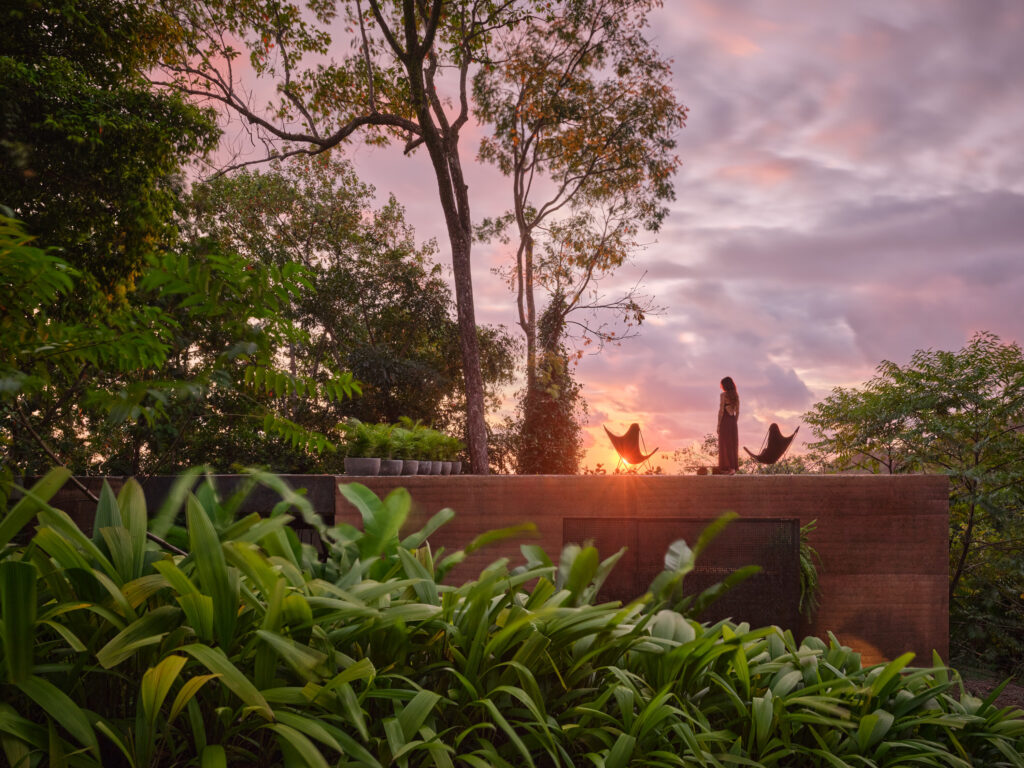 Doživljaj jedinstvenog pejzaža, napiminju iz Formafatal, pojačan je odsutnošću cijele jedne fasade u glavnom boravišnom prostoru. “Živa scena, koja se mijenja svakog trenutka dana, protječe kroz kuću i vraća se u okolnu džunglu. Džungla, zrak, zvuk i svjetlo bude sva osjetila, brišući granicu između interijera i eksterijera. Umjesto pasivnog promatrača iza prozora, postaje se dijelom pejzaža”, opisuju.