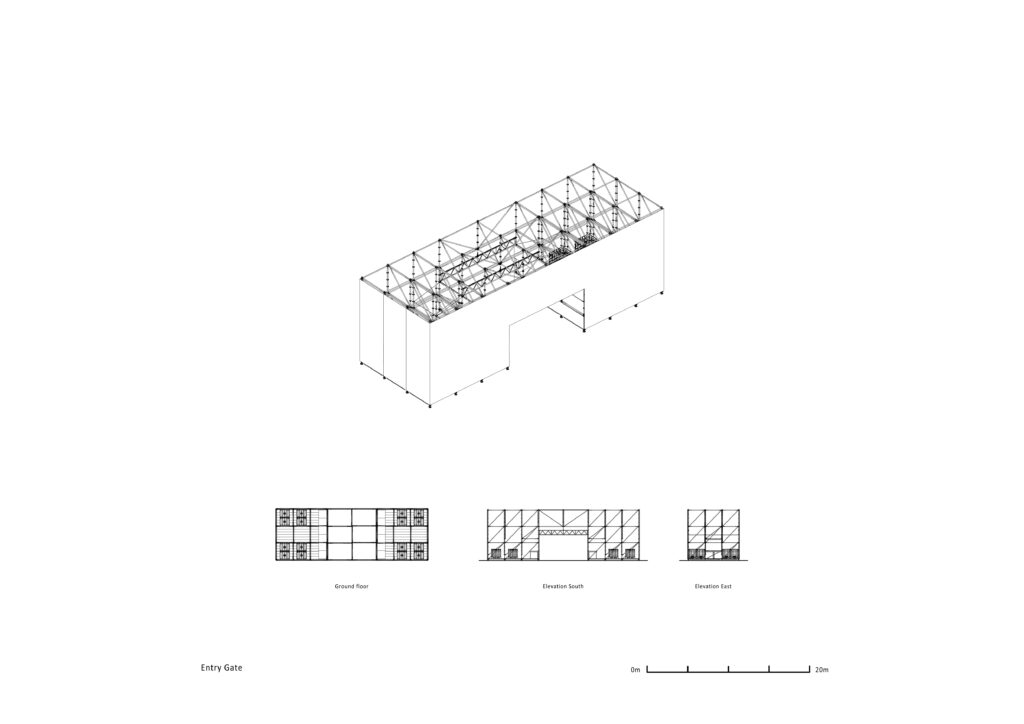 Ulaz na festival doživio je značajnu transformaciju u odnosu na prethodne godine. Izgrađen od konstrukcije sa skelama, s bijelom perforiranom mesh tkaninom i tornjem od zrcalnog polikarbonata, ulaz/izlaz postaje vizualni orijentir i svjetlosni signal za posjetitelje. Prostor za akreditacije i dodatne usluge integriran je u središnji dio, čime se funkcionalnost i estetika stapaju u jedinstvenu cjelinu.