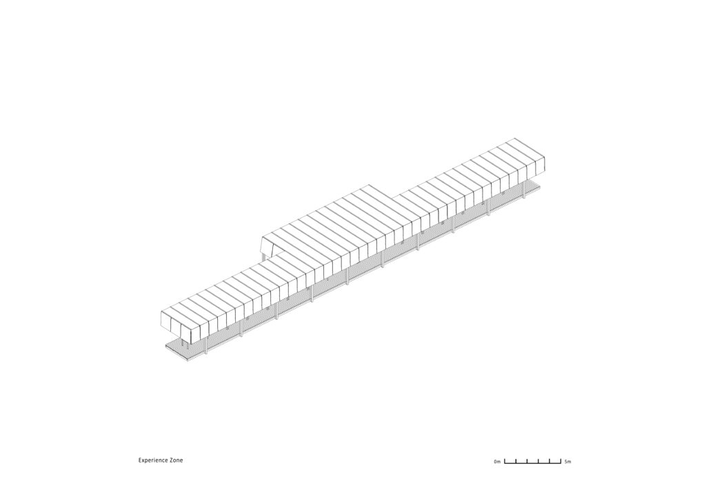 Experience Zone paviljon namijenjen je ugodnom sjedenju i gastronomskim iskustvima za oko 150 osoba. Dugi drveni moduli i tekstilni stropovi s rasvjetom stvaraju istodobno rustikalnu i suvremenu atmosferu, a objekt je simetrično podijeljen na dva krila s centralnim prostorom za gastro upotrebu.