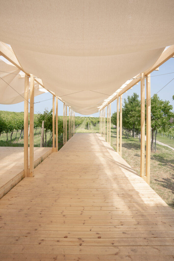 Taj zadatak pripao je studiju Jakub Kolarovič Architects koji je isporučio nekoliko rješenja koja su istovremeno diskretna i upečatljiva, a koja uključuju sjeno kao jedan od glavnih građevinskih materijala, tkanine i lagane, nenametljive konstrukcije.