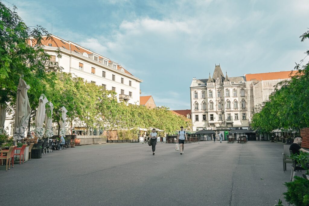 Tijekom šetnje sudionici će upoznati vrijedne građevine na obodu trga, poput zgrade Radničke komore (1938., arhitekti Šterk, Korka, Krekić i Kiverov), danas sjedišta sindikata i Knjižnice Božidara Adžije, Činovničkog doma (1923.–1926., Valerijan Rieszner) te monumentalne Državne trgovačke akademije (1938., Zvonimir Vrkljan, danas Ministarstvo obrane). Predstavljene su i druge značajne građevine društvene namjene, poput zgrade Hrvatskog književnog društva sv. Jeronima (1928.–1931., Đuro Kastl), te stambene kuće istaknutih autora – Kasumović (Benedik i Baranyai), Draganec (Vladimir Šterk), Pordes (Zlatko Neumann), kao i uglovnice braće Carnelutti i Otona Goldscheidera. Time je oblikovan jedinstven prostor zagrebačkog trga-parka, čije krajobrazno rješenje potpisuje Ciril Jeglič uz suradnju Josipa Seissela. Šetnja, temeljena na monografiji “Krešimirac”, otvara pogled na genezu i transformacije trga kroz različite ideologije i razdoblja, ali i na suvremena sjećanja i iskustva građana.